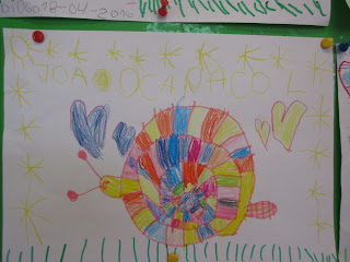 A Camila desenhou um caracol muito bonito! A seguir todos quiseram desenhar e saíram obras de arte...Quanto aos caracóis, nunca tiveram tanta atenção.