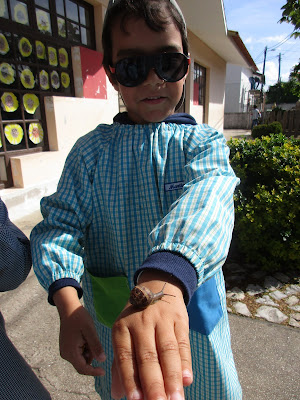 Nestes dias de chuva descobrimos que o recreio estava cheio de caracóis...